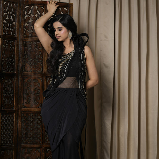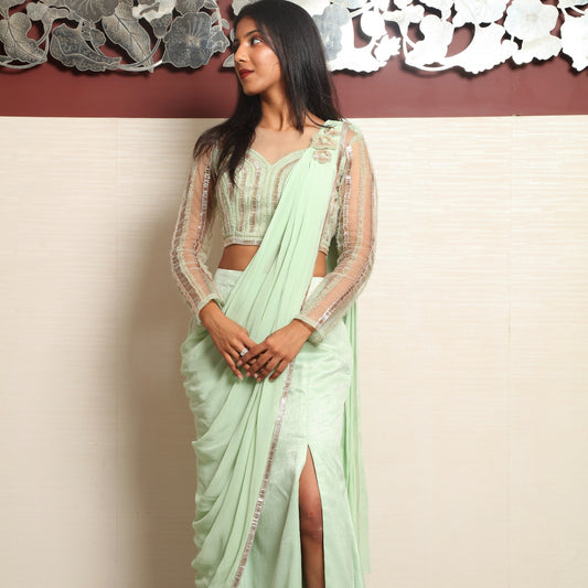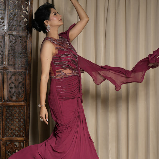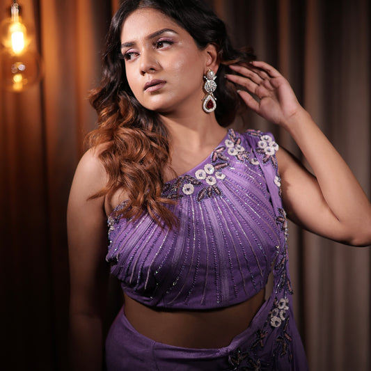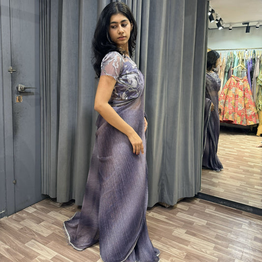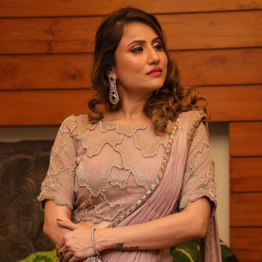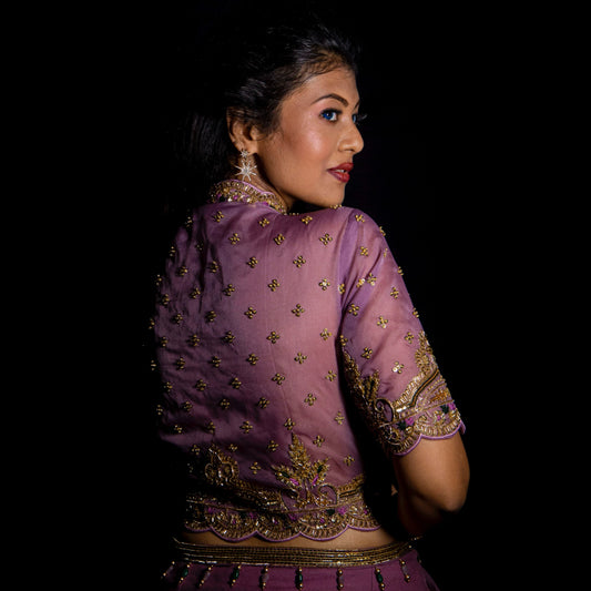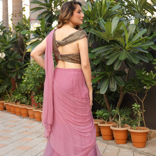 Onion Pink Mauve Saree with Worked Blouse Artistry